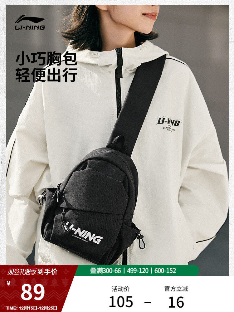 Li-Ning Single Shoulder Bag for Men, Official Small Lightweight Multifunctional Chest Bag, Trendy Student Commuter Sports Crossbody Bag for Women