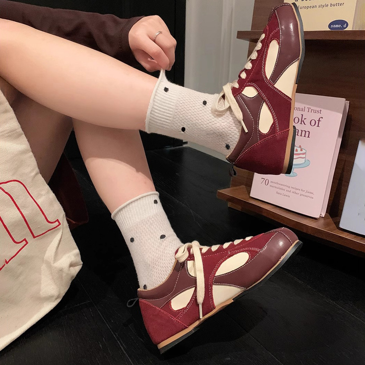 Hong Kong Ankora Red Casual Shoes for Women 2026 Spring and Autumn New Color-Blocking Sneakers Versatile Lace-Up Ballet Training Shoes