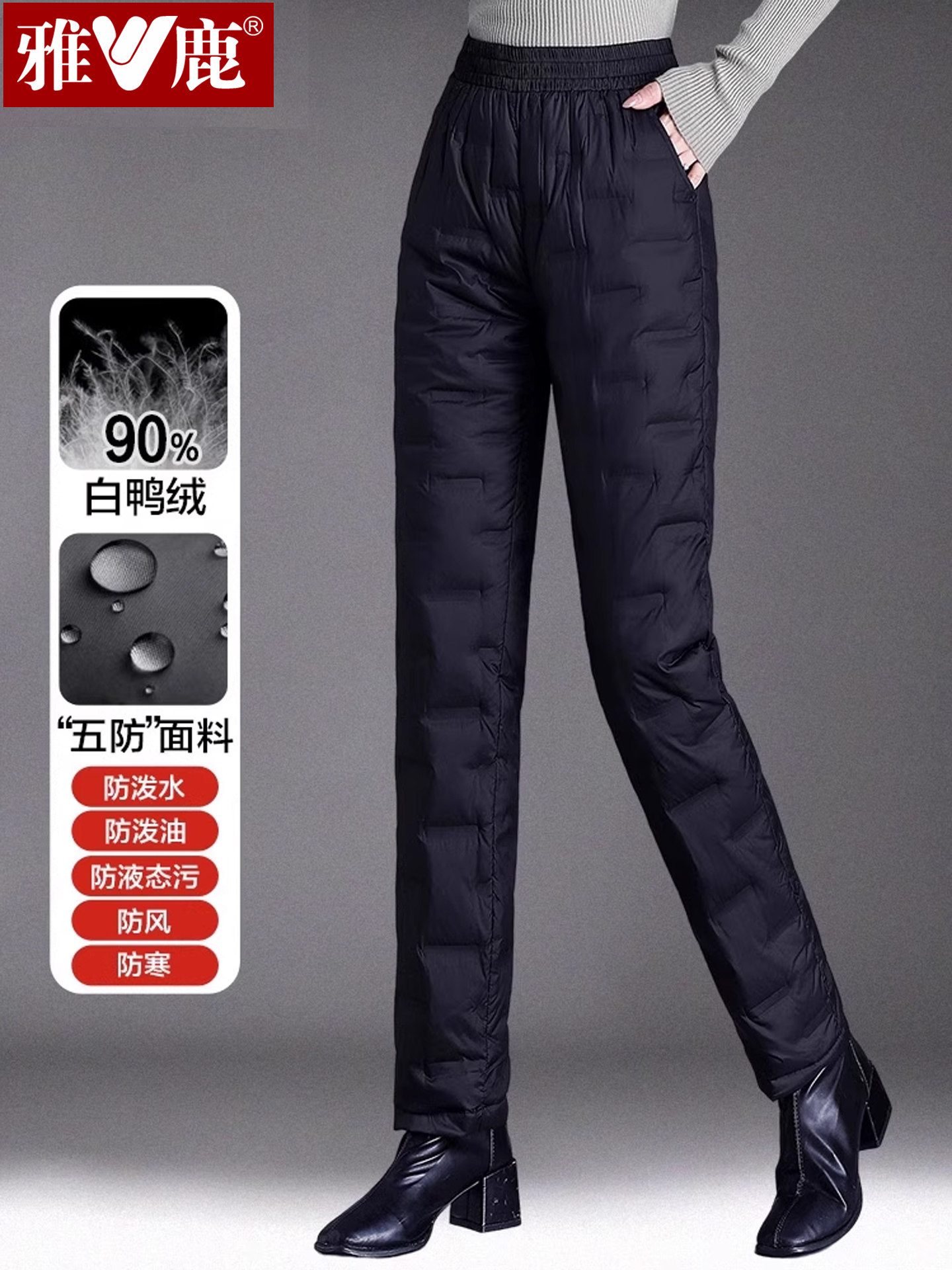 Yalu Brand Middle-Aged and Elderly Women's down Pants for Outdoor Wear, Winter High-Waisted Loose Thickened Mom-Style Straight Cotton Pants New Model
