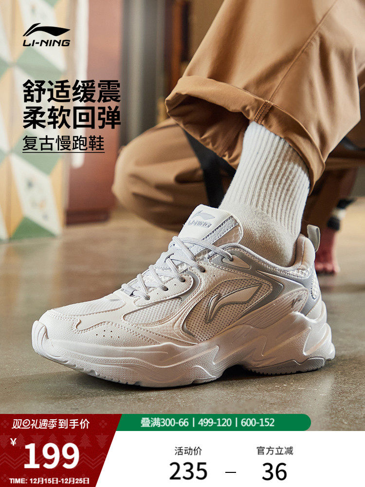 Li-Ning Running Shoes Men's Mesh Breathable Casual Shoes Shock-Absorbing Lightweight Sports Shoes Official Retro Trendy Dad Shoes