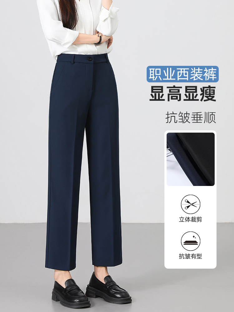 Women's Suit Pants for Spring and Autumn, Professional Formal Wear, Work Commute, High-Waisted, Slimming, Black, Petite, Cropped Straight-Leg Pants