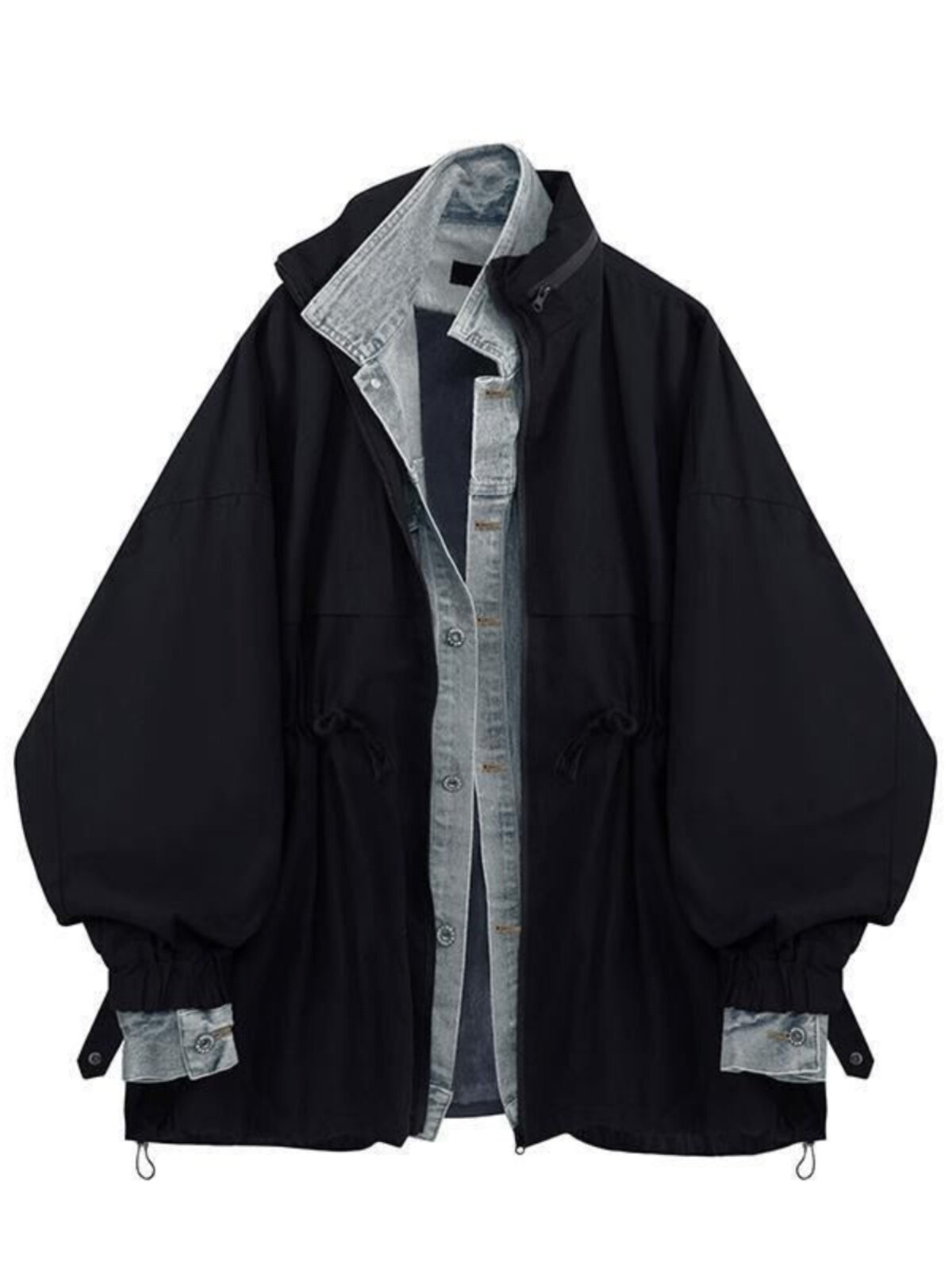 150kg Extra Large Size Hong Kong Style Fake Two-Piece Denim Jacket for Men and Women, New Spring and Autumn Trendy Brand High-End Loose Windbreaker ins