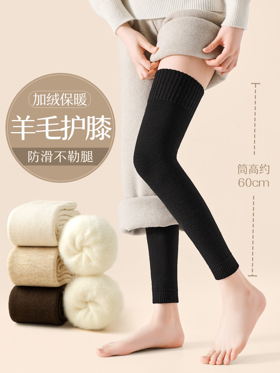 Wool Knee Socks for Women, Autumn and Winter, Extra Long Over-The-Knee Leg Warmers, Non-Slip, Fleece-Lined, Thickened, Warm Leg Covers, Long Tube Socks