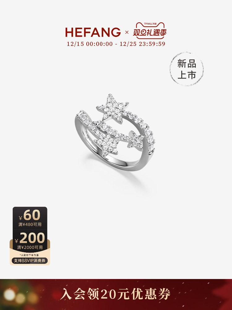 Hefang Jewelry Meteor Ring Light Luxury High-End Accessories Jewelry Elegant Christmas Gift