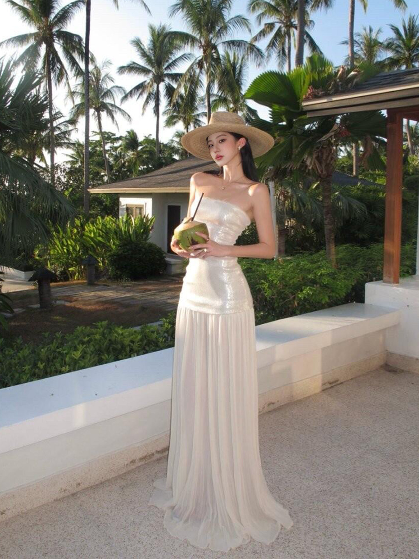 Thailand Chiang Mai Beach Sweet and Fresh Travel Outfit Long Dress Yunnan Dali Vacation Style Spaghetti Strap Dress for Women