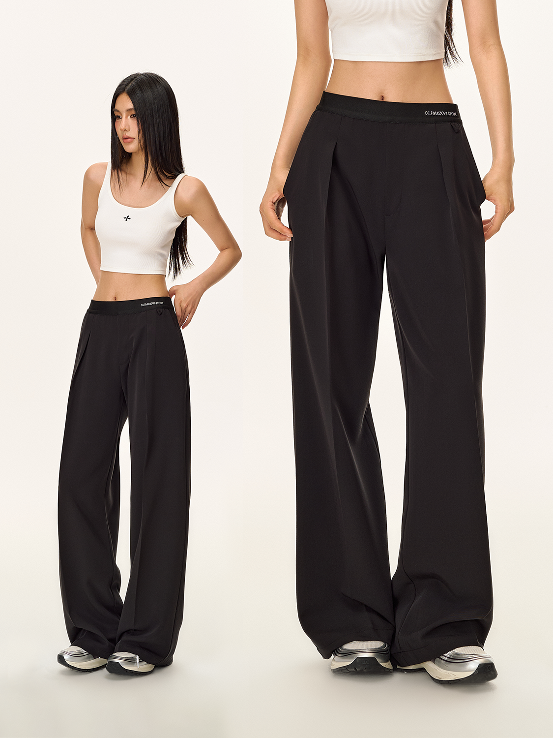 Climax Vision Skin-Friendly, Dry-Feeling, Rhinestone Logo Patchwork, Elastic Waist, Slimming Straight-Leg Dress Pants for Women
