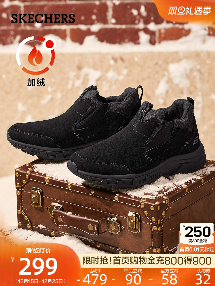 Skechers Men's Winter Slip-On Snow Boots, Thickened and Fleece-Lined, Warm High-Top Shoes, Cotton Shoes, Outdoor Casual Shoes