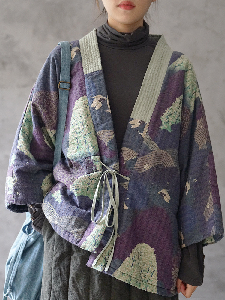 Chinese-Style Cotton Coat, Loose Fit, Printed, Thickened, Padded, Retro, Artistic, Japanese-Style, Diagonal Placket, Tea Clothing, Japanese Cotton Jacket