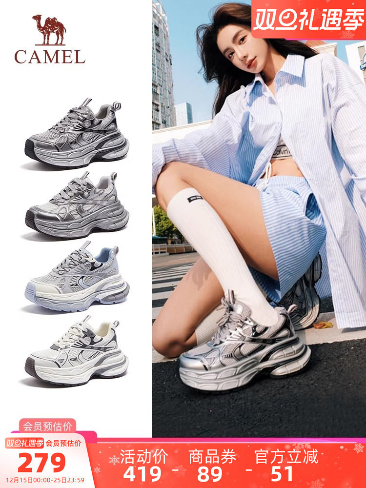 Camel Silver Moon Outdoor Retro Dad Shoes Women's Shoes 2025 Winter New Sports Shoes Women's Thick-Soled Casual Shoes
