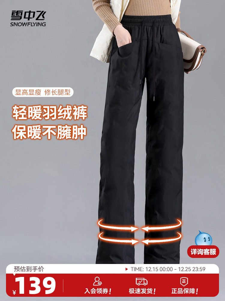 Xuezhongfei 2025 Winter New Women's down Pants, Lightweight, Warm, Slimming, Straight-Leg, Comfortable, Waterproof, Cold-Resistant, Dirt-Resistant S