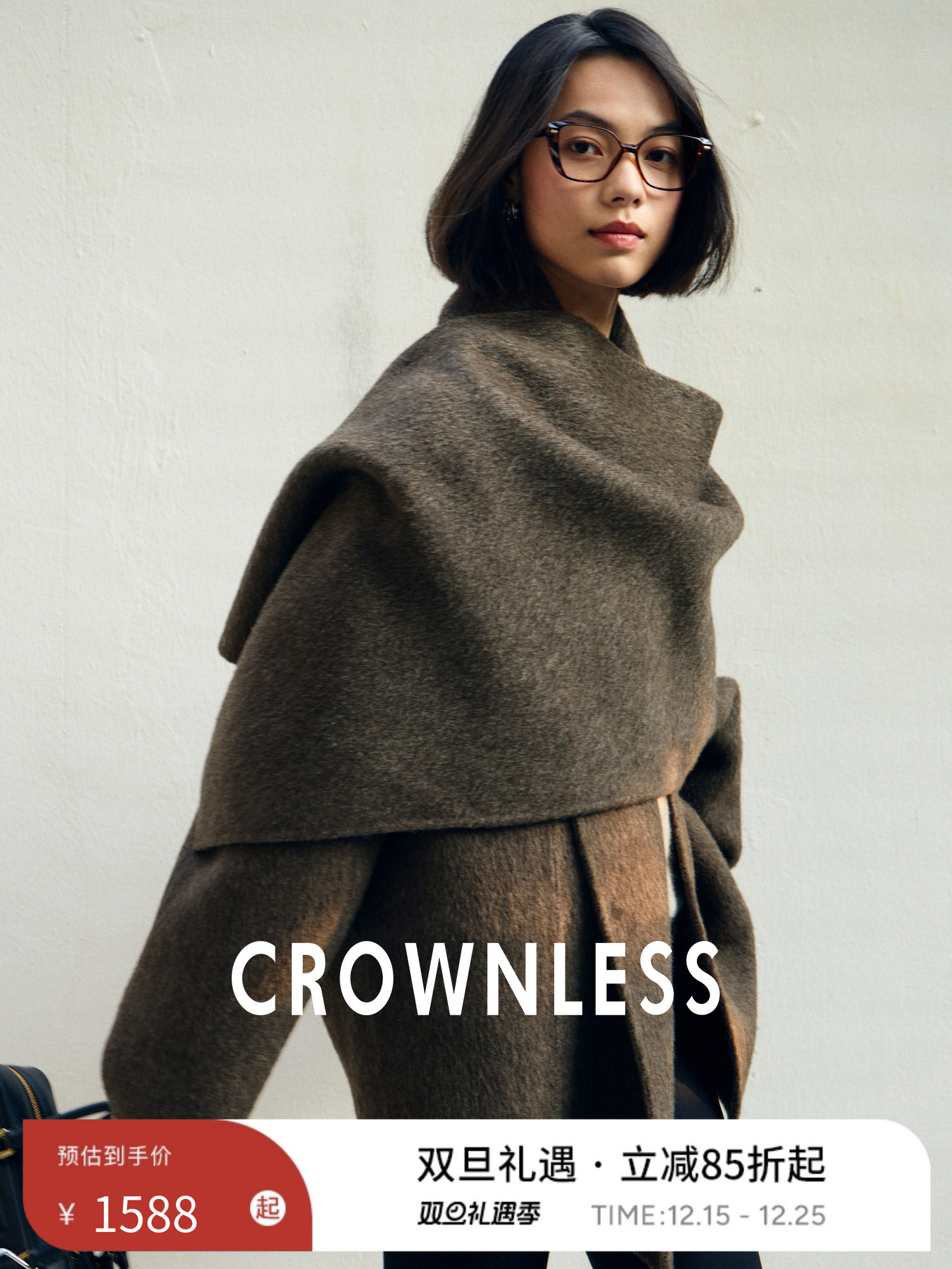 Crownless Unlined Relaxed Yak Wool Double-Sided Woolen Scarf Shawl Mid-Length Coat