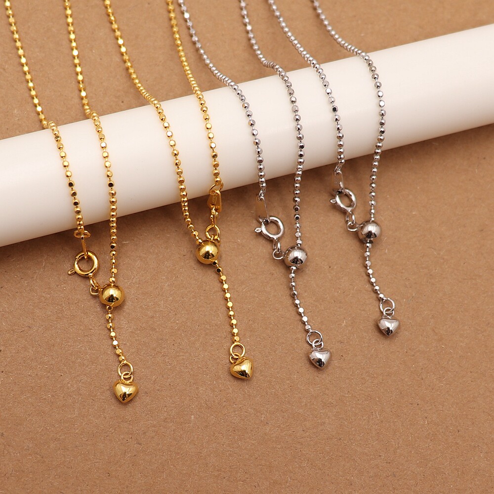 S925 Sterling Silver Square Bead Necklace, Adjustable Pull Chain, Beaded Chain, Clavicle Chain, Heart Chain, Small Square Bead Sweater Chain
