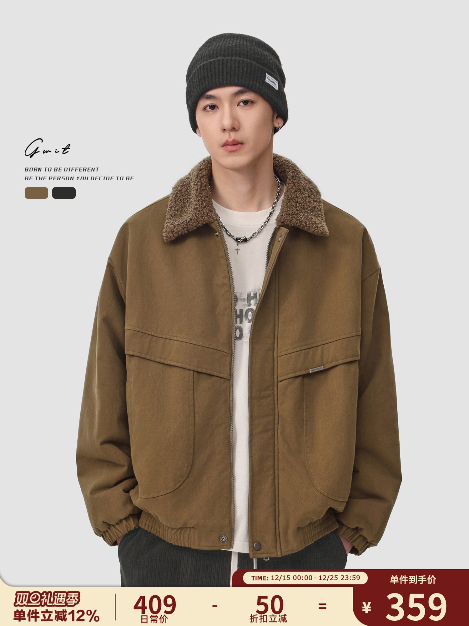 Gwit Maillard Retro Vintage Jacket Winter Warm Cotton Padded Thickened Lamb Wool Workwear Jacket for Men