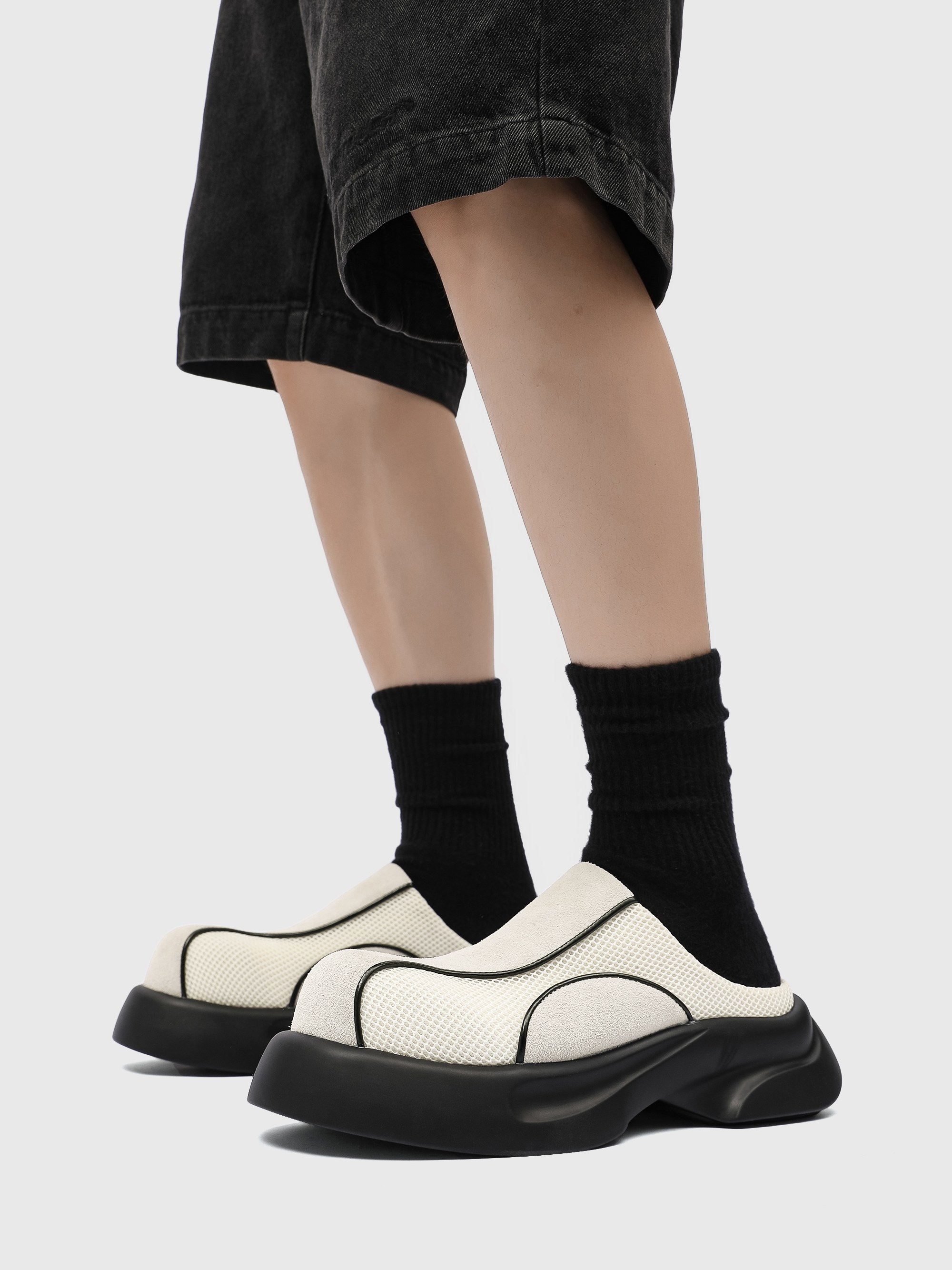 European Style Slip-On Shoes for Men, Niche Design, Men's Derby Closed-Toe Slippers, Thick-Soled Casual Lazy Half-Slip Trendy Shoes