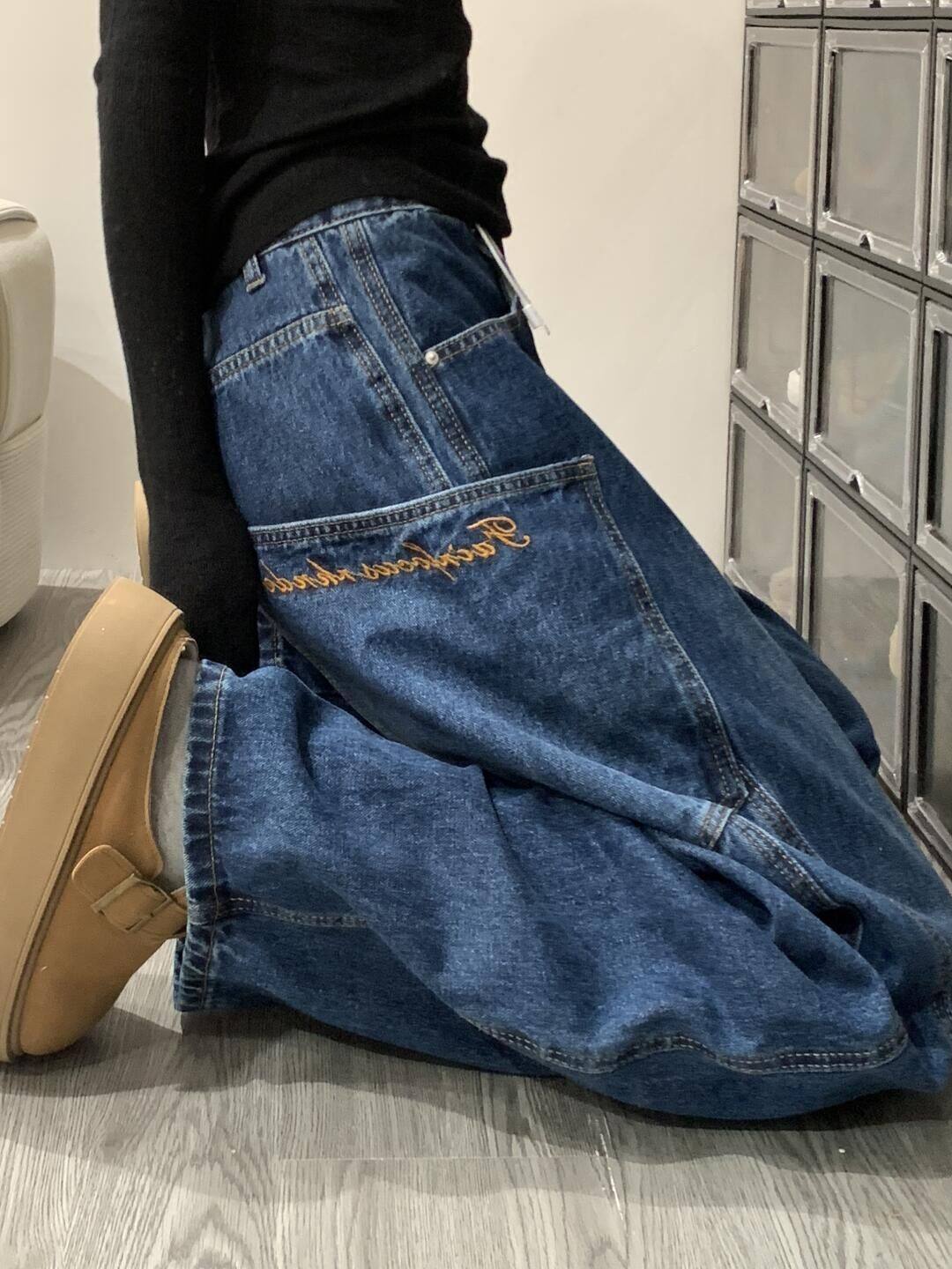 Three12's Personal Recommendation~ Large Pocket Scimitar Jeans for Women, Spring and Autumn Design, Niche Sickle Wide-Leg Pants