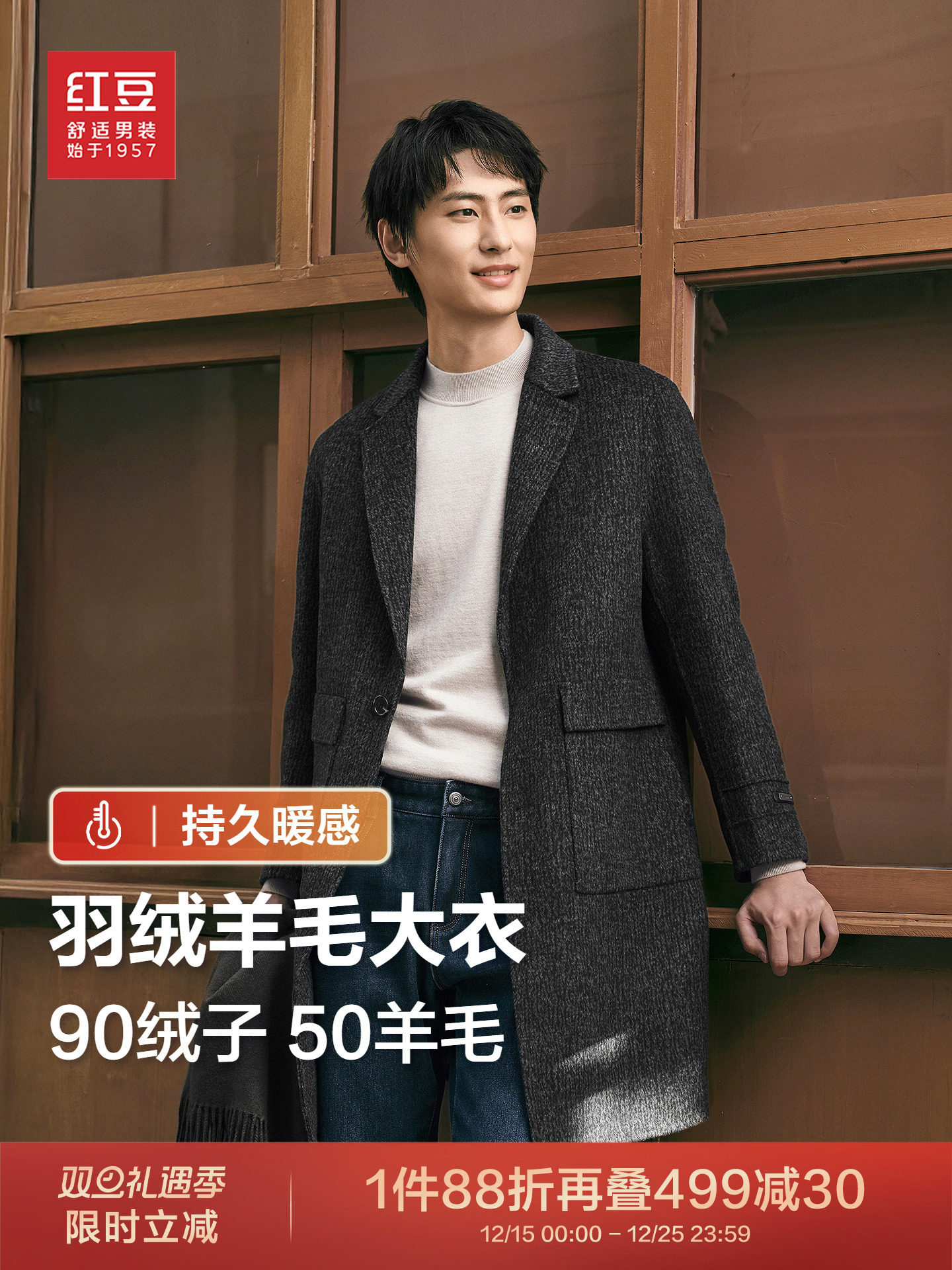 Red Bean Wool Double-Sided Woolen Coat for Men, Extra Long, Winter 25, 90% down Lining, Detachable Coat for Men