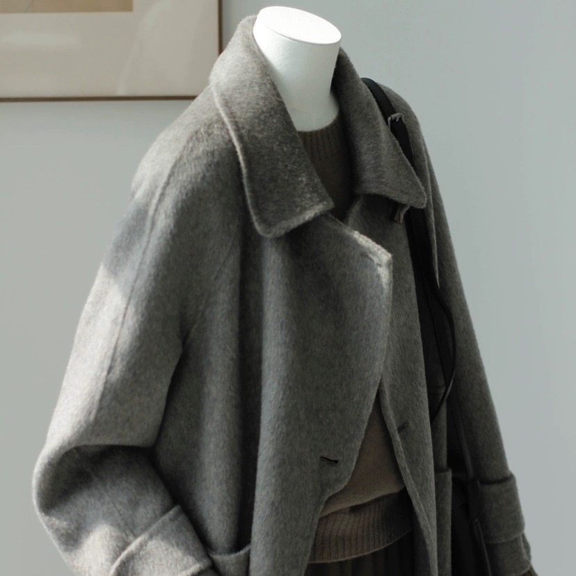Air【Clearance】Double-Sided Wool and Tencel Blend, Very Fine, Long Commuter Coat