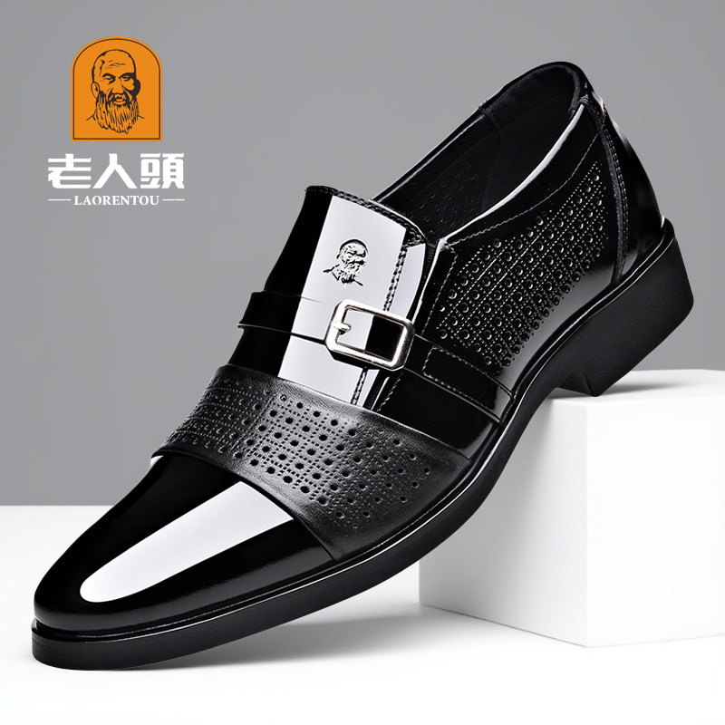 Men's Summer Sandals with Hollow Design, Breathable, British Style Business Formal Leather Shoes, Genuine Leather Height-Increasing Clogs for Men