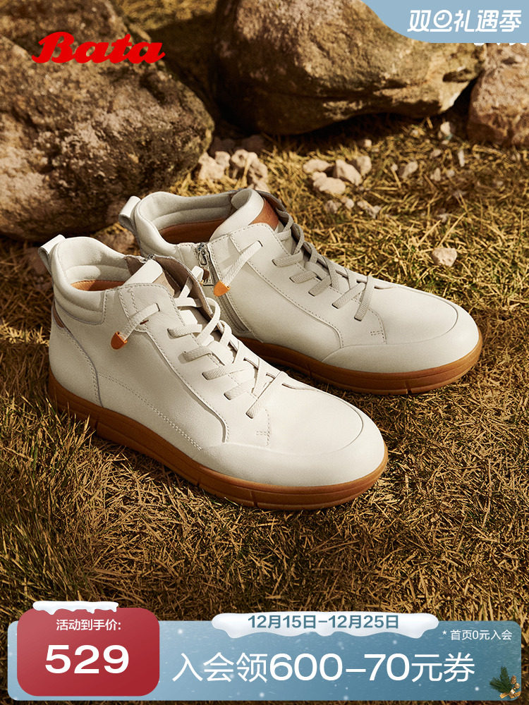 Bata Casual Boots for Women 2025 Winter New Leather Commuting Versatile Fashion High-Top Shoes Atk51Dd5