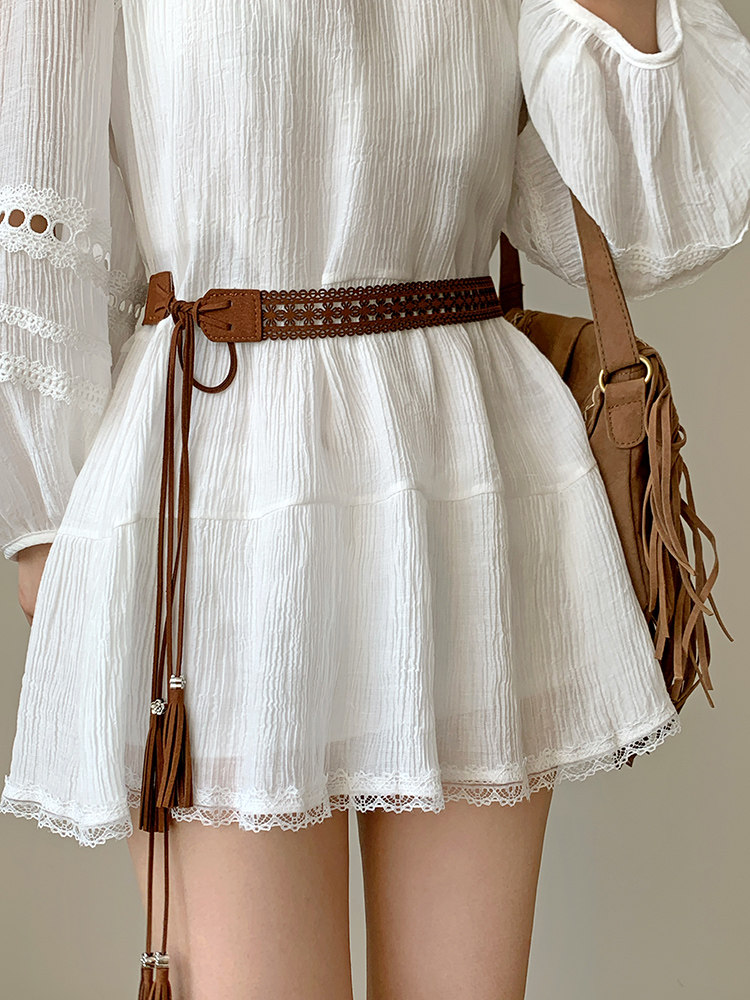 Ethnic Style Belt for Women, Wide, Suitable for Dresses, Vintage, Versatile, Sweater, Autumn Hanfu Accessory, Decorative Brown Belt
