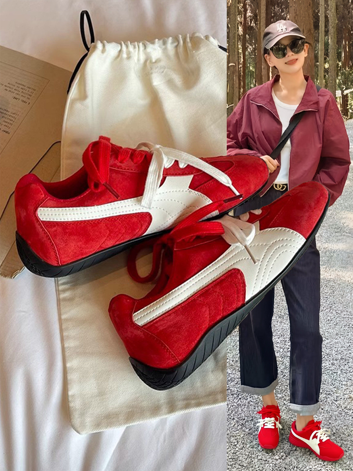 Hong Kong Genuine Leather Ankora Red Training Shoes for Women 2025 Spring New Style Petite Height-Increasing Soft-Soled Sports Shoes