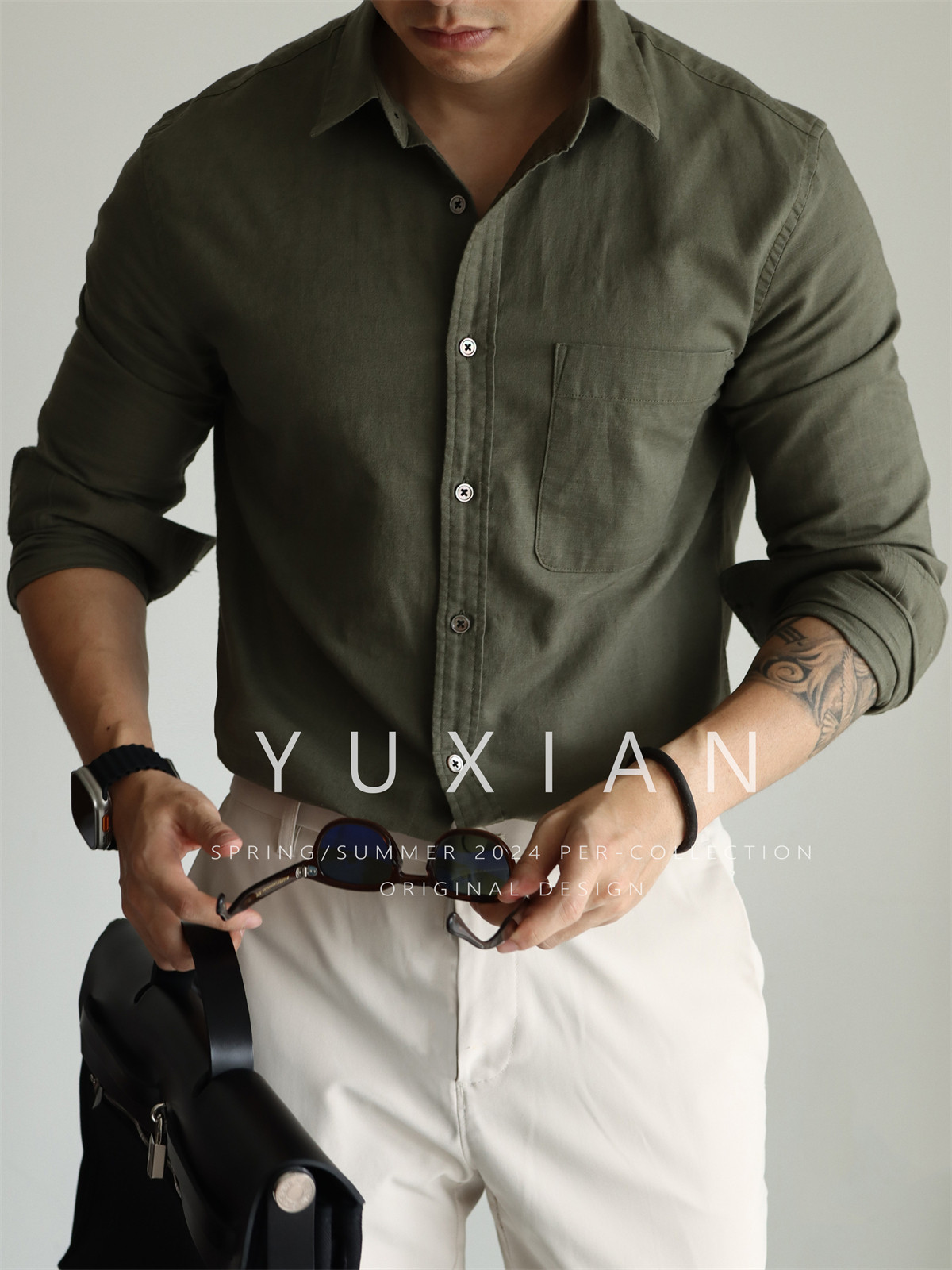 Yuxian High-End Linen Cotton Long-Sleeve Shirt with Pockets, Casual Business Lapel, Slim Fit for Commuting, Spring, Autumn and Summer for Men