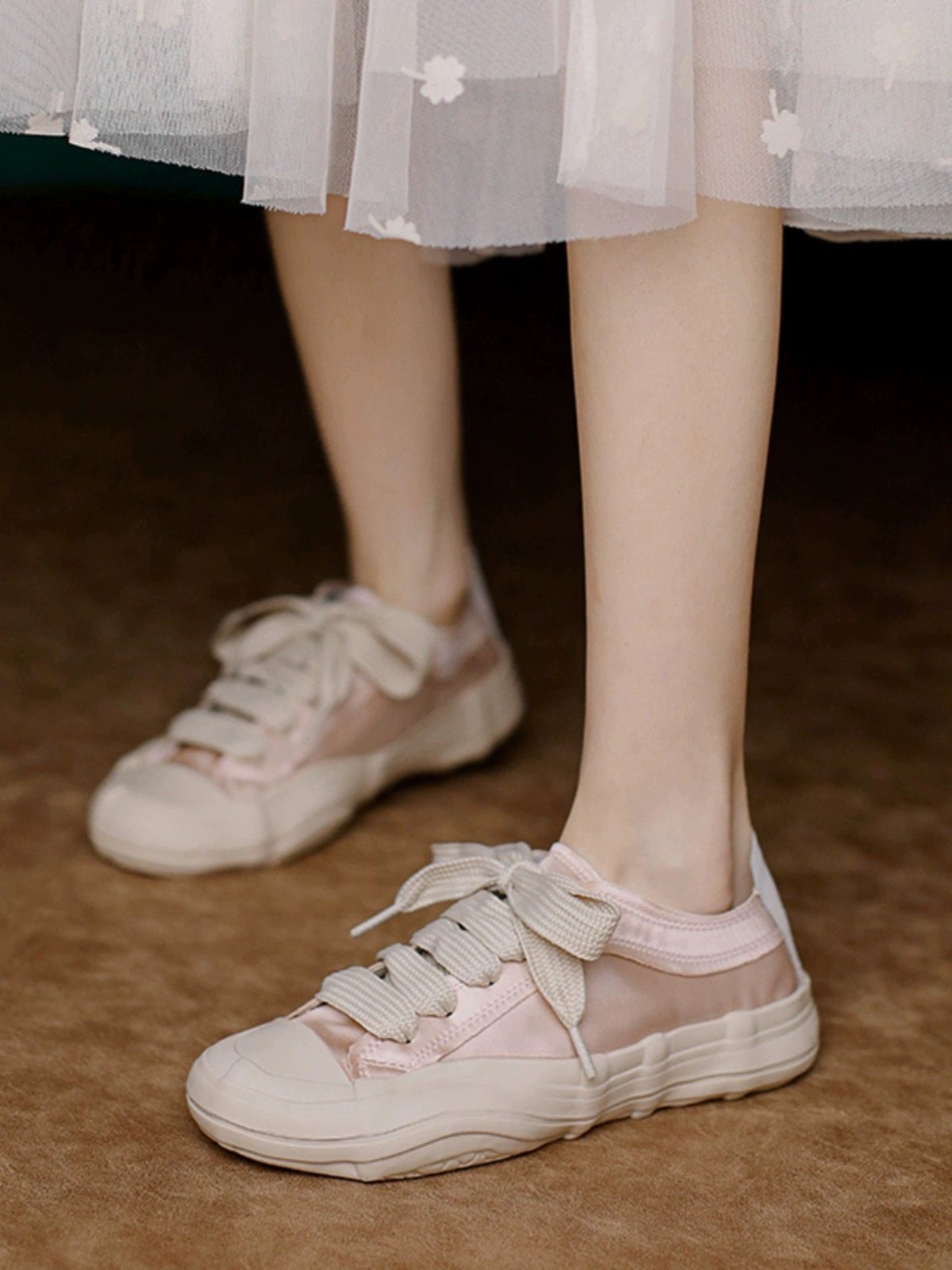 Hong Kong Dissolving Sole Canvas Shoes for Women 2025 Spring and Autumn Versatile Retro Silk Satin Round Toe Lace-Up Fashion Casual Shoes