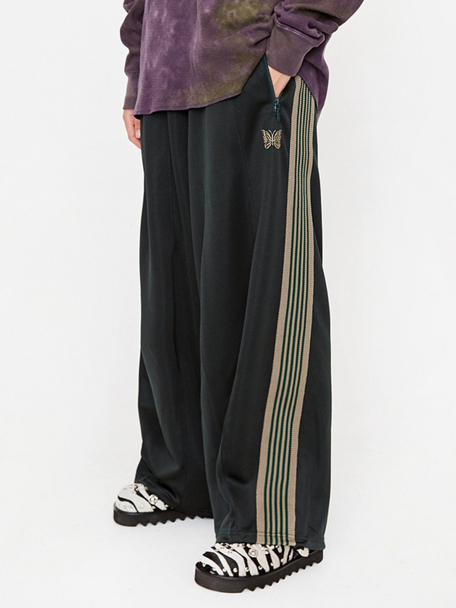Needles European and American Japanese-Style Niche Trendy Brand Butterfly Embroidery Striped Webbing Sports Wide-Leg Straight Long Pants