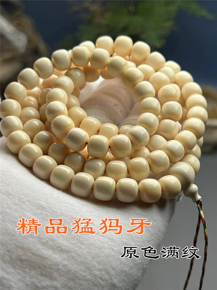 Natural Mammoth Tooth 108 Beads Bracelet Necklace Full Grain Ice Material Original Color Jelly Old-Style Beads Jelly Unisex Prayer Beads
