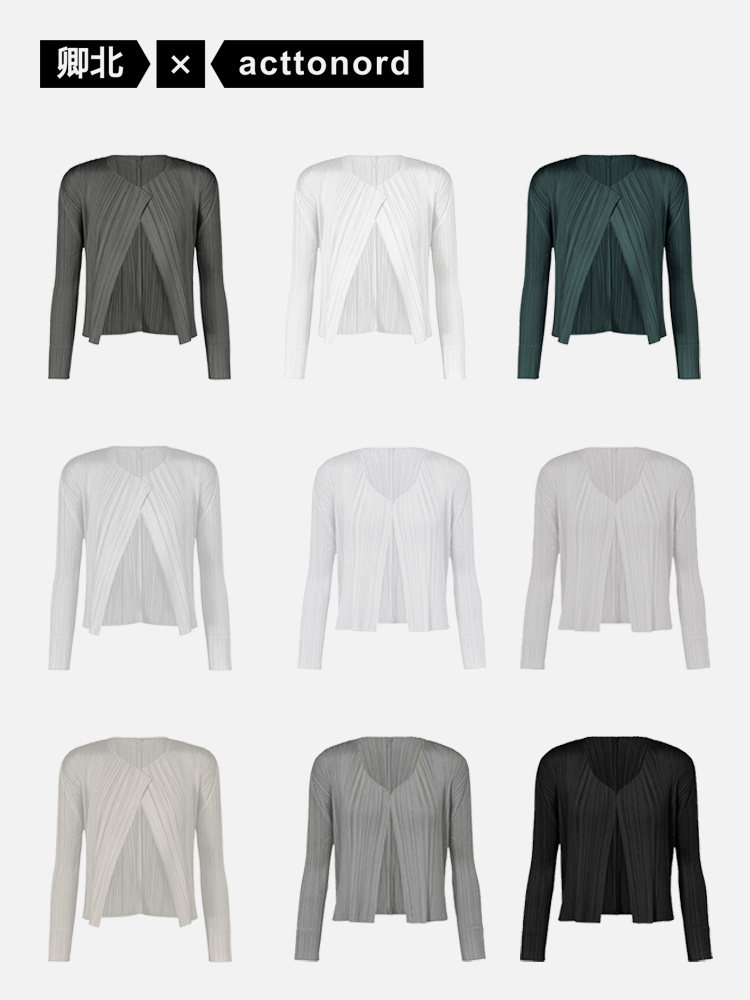 Qingbei丨 Pleated Cardigan Sun Protection Shirt Air Conditioning Shirt Outer Layer Autumn Thin Short Jacket Women's Miyake Jacket Jo163
