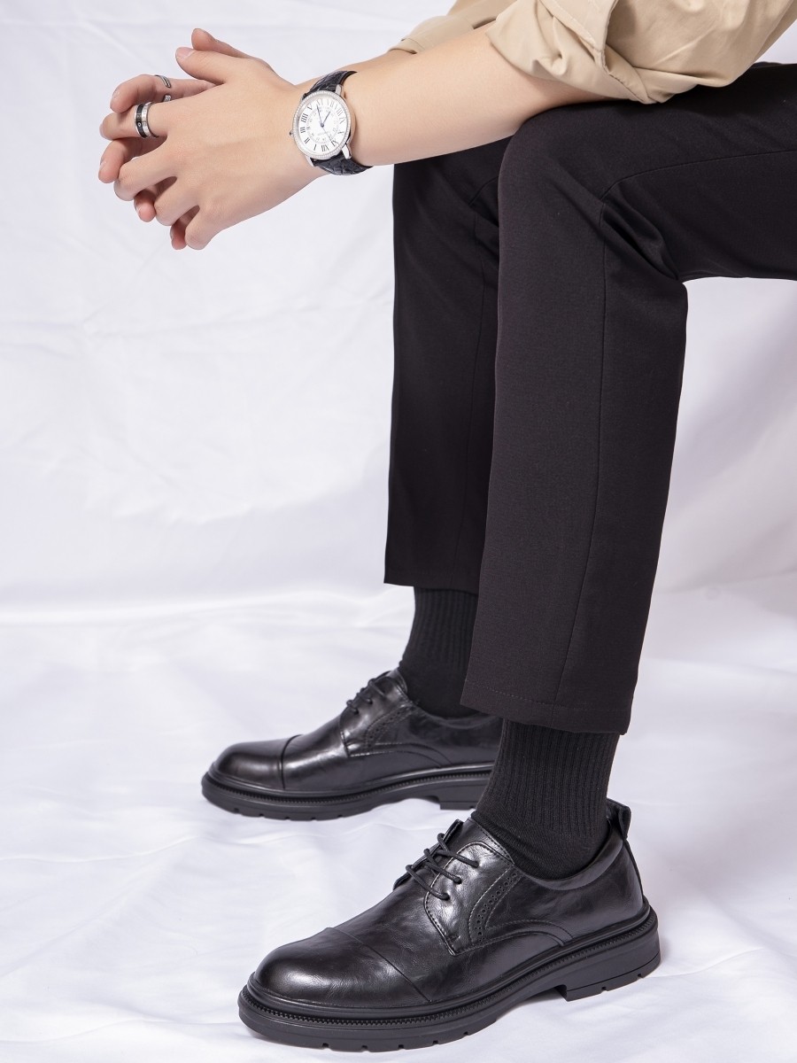 Genuine Leather New Business Formal Men's Leather Shoes, Casual Breathable Soft-Soled British Wedding Shoes, High-End Derby Leather Shoes