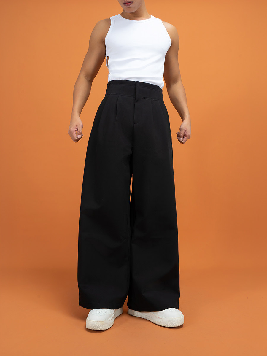 Clp Black High-Waisted Wide-Leg Casual Pants, Dress Pants for Men and Women, Loose Straight-Leg Drapey Trousers, Vintage Light Luxury Miu