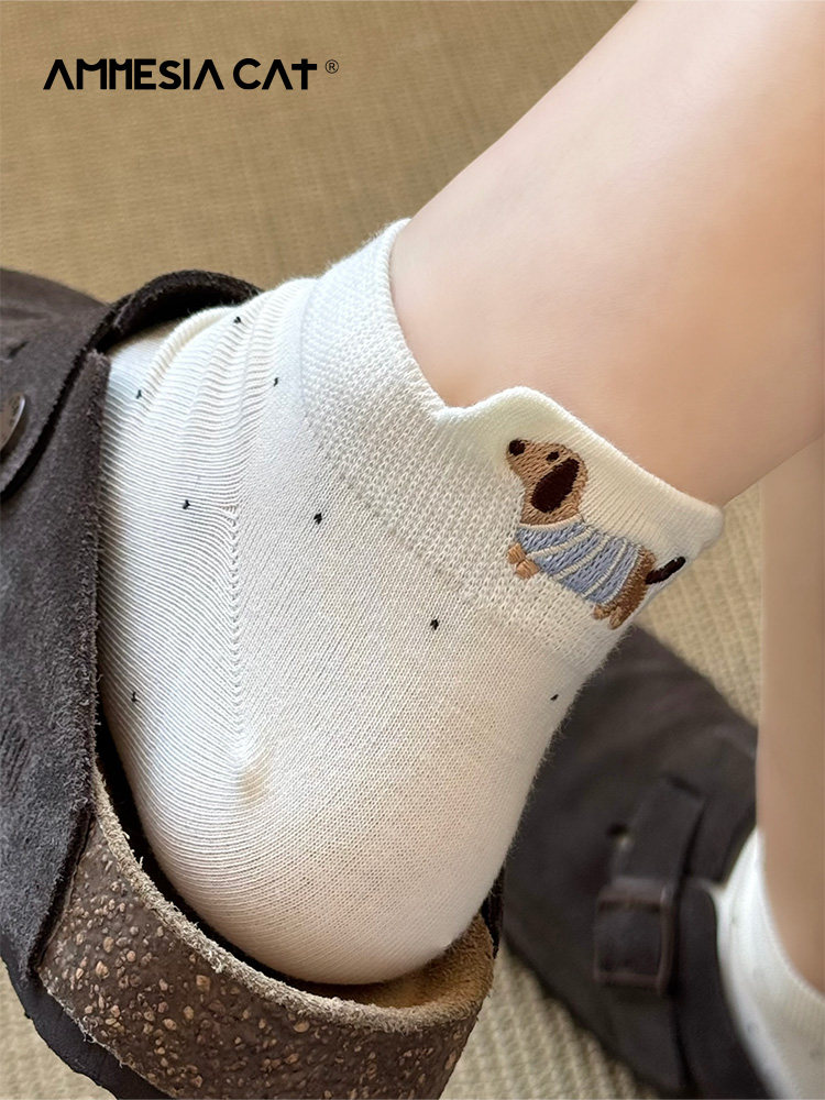 Puppy White Socks for Women 2026 New Popular Spring and Autumn ins Trendy Korean Style Cotton Socks Summer Cute Short Socks