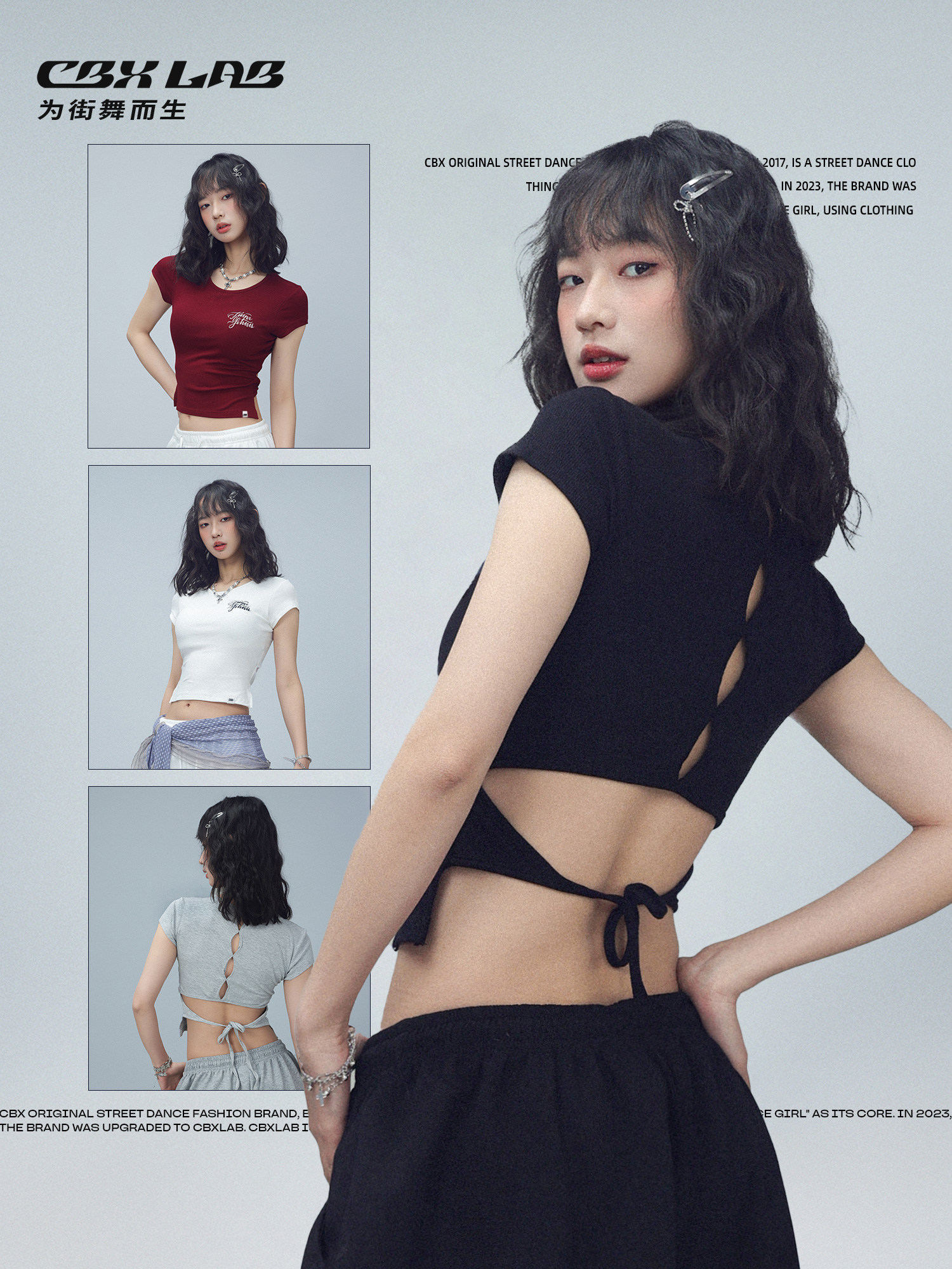 Cbxlab Street Dance Trendy Brand Spring and Summer Backless Lace-Up Short-Sleeve Sexy Soft Skin-Friendly Jazz Slim-Fit Top for Women