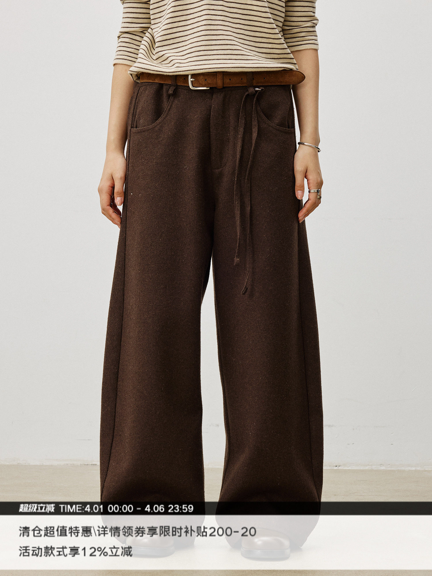 Lr Made Wool and Linen Blend Heavy-Duty Composite Wide-Leg Warm Woolen Wrinkle-Free Drawstring Long Trousers