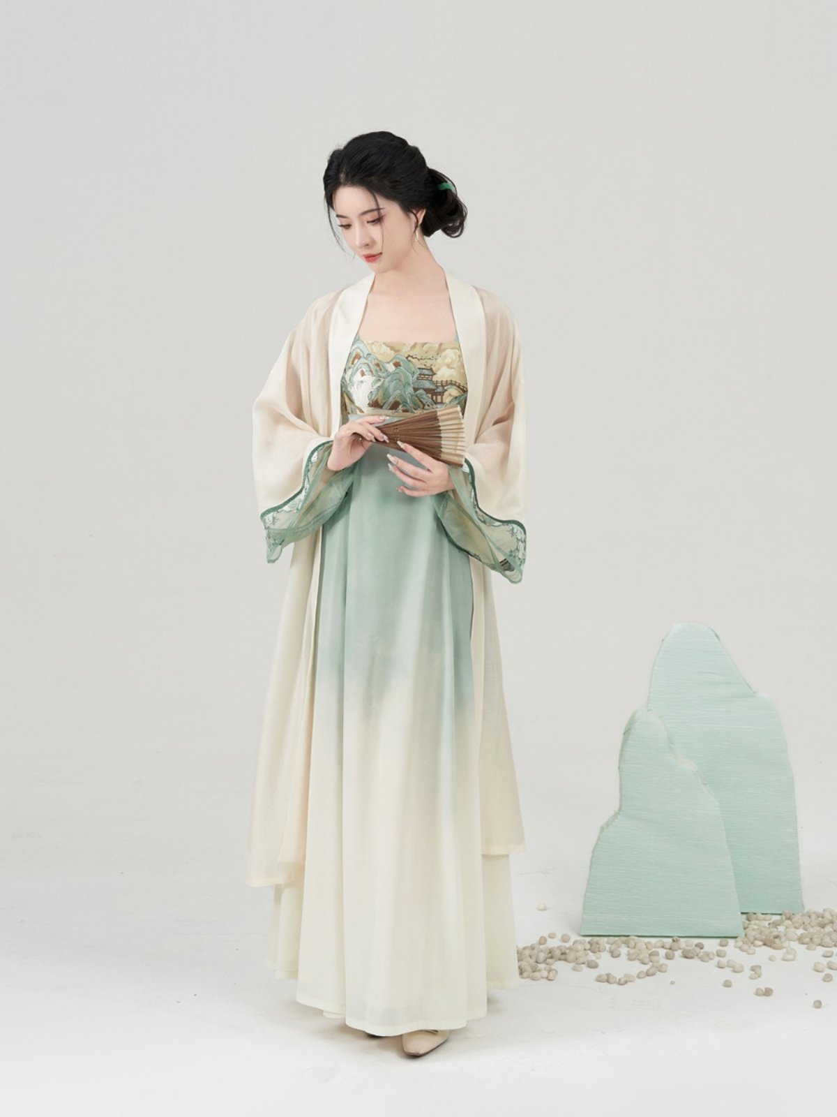 Original Hanfu by Weaving Department [Qingshanxing] Tang-Style National Style Suspender Dress for Women, Two-Piece Set with Front-Buttoned Outer Shirt and Skirt