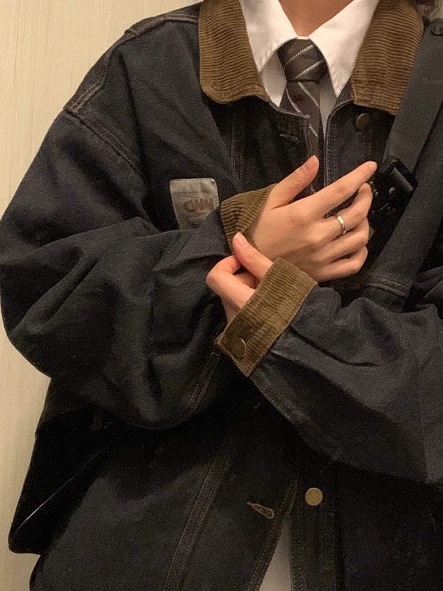 Retro Patchwork Youthful Denim Jacket for Men and Women, Spring and Autumn Unisex Style, Loose, Cool and Versatile Jacket, Denim Jacket