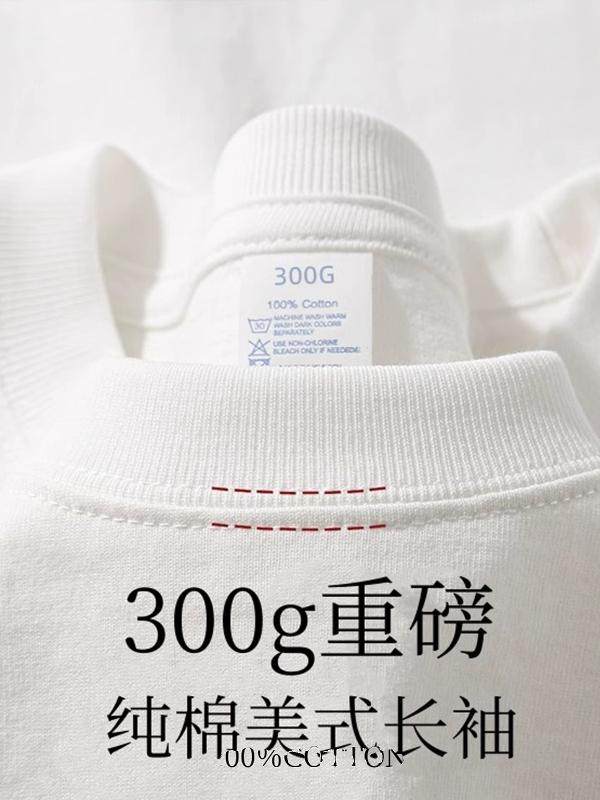 300g Heavyweight Cotton White Long-Sleeved T-Shirt for Men and Women, Spring and Autumn Inner Wear, Loose Casual Base Shirt