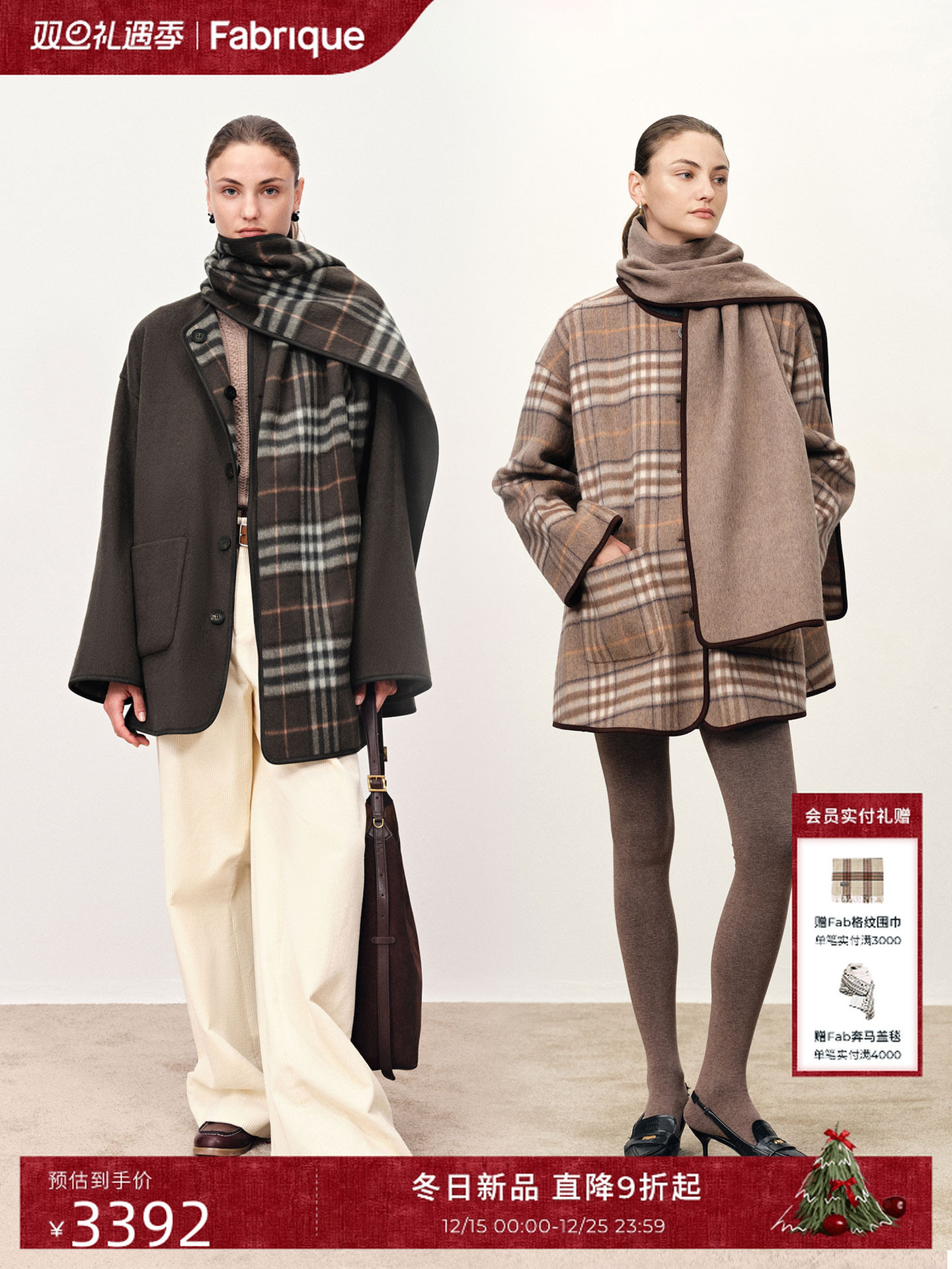 Yetong's Same Style Fabrique Thames Double Plaid Coat Short Wool Cashmere Woolen Coat Cape for Women