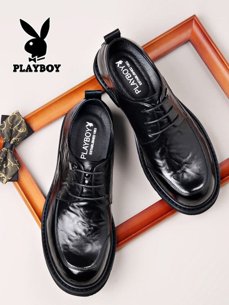 Playboy Leather Shoes for Men, Genuine Leather, Business Formal Wear, Wide Toe, Wide Feet, Black, Height-Increasing, Wedding Groom, Large Size, Winter