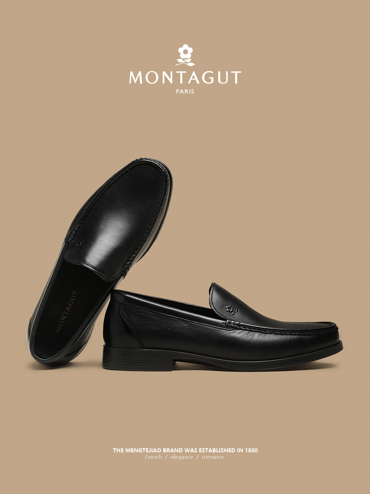 Montagut First-Layer Cowhide Dad Casual Leather Shoes Men's Winter Business Formal Slip-On Wedding Groom Derby Shoes