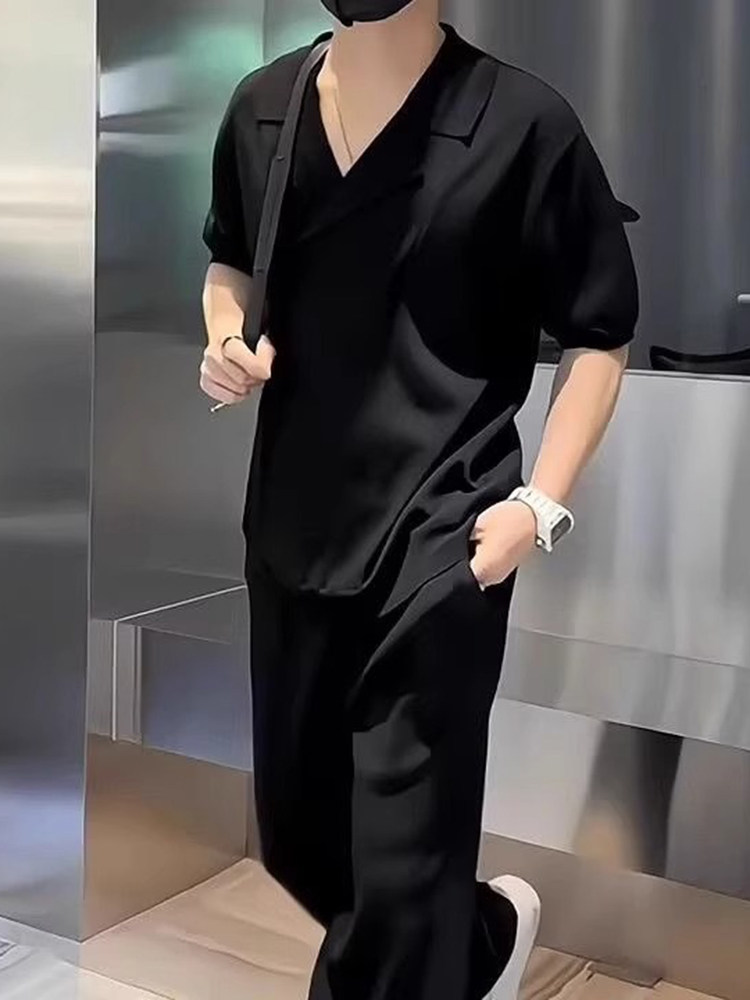 Vacation-Style Relaxed Outfit Set for Men, Summer Wear, White Long-Sleeved Tencel Linen Shirt and Pants Two-Piece Set