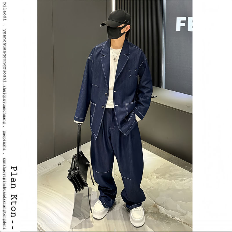 Osens Three-Dimensional Textured Elastic Waist Drawstring Double Pleated Tapered Loose Casual Pants Versatile Long Pants for Men Spring and Summer