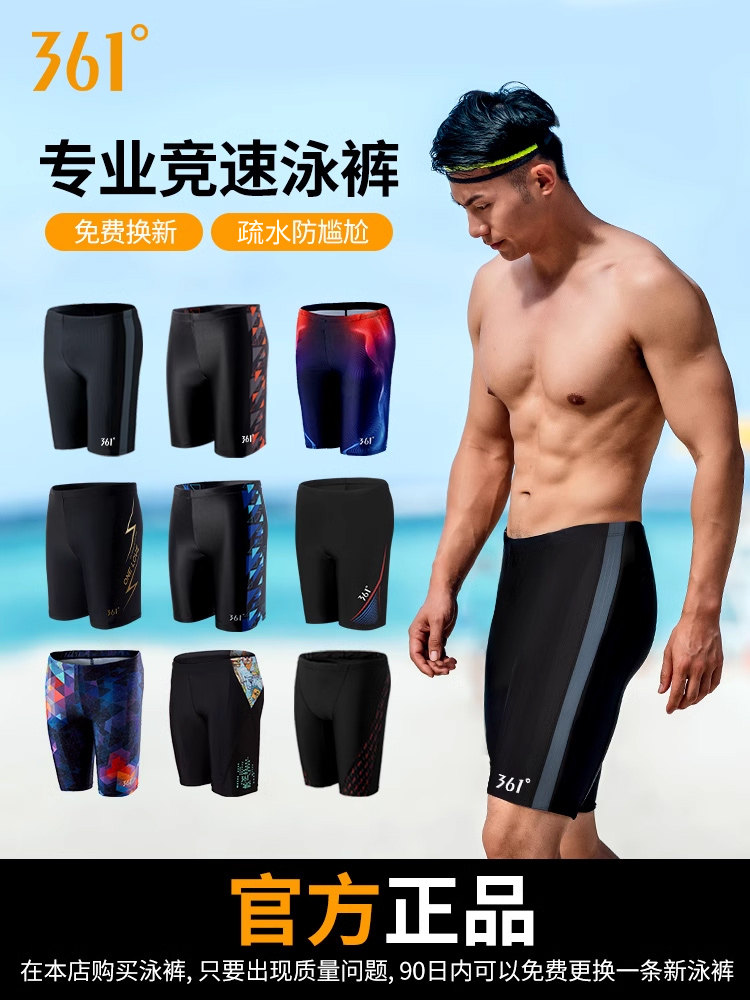 361 Men's Swim Trunks Professional Swimming Shorts Men's Five-Point Anti-Embarrassment 2025 New Swimming Suit Hot Spring Equipment