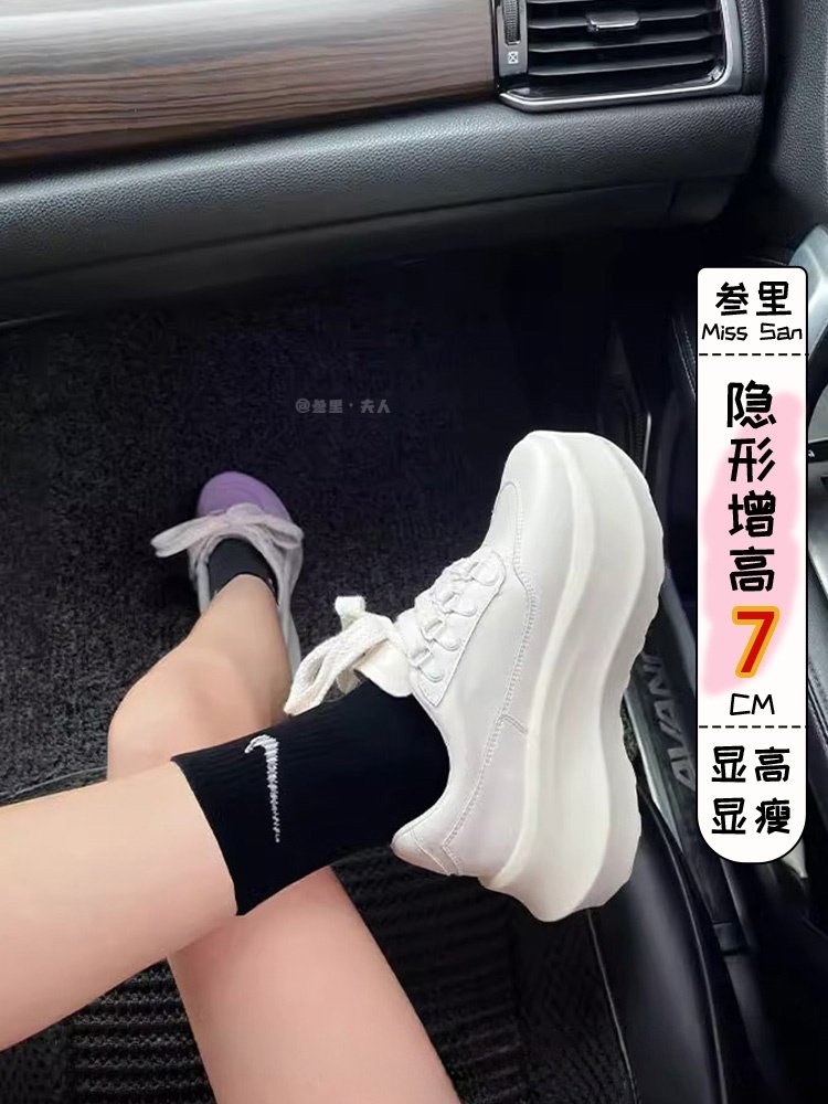 Three-Layer Thick-Soled Fashionable Dad Sneakers for Women, 2025 Spring and Autumn New Lightweight Height-Increasing Lace-Up College Style White Shoes