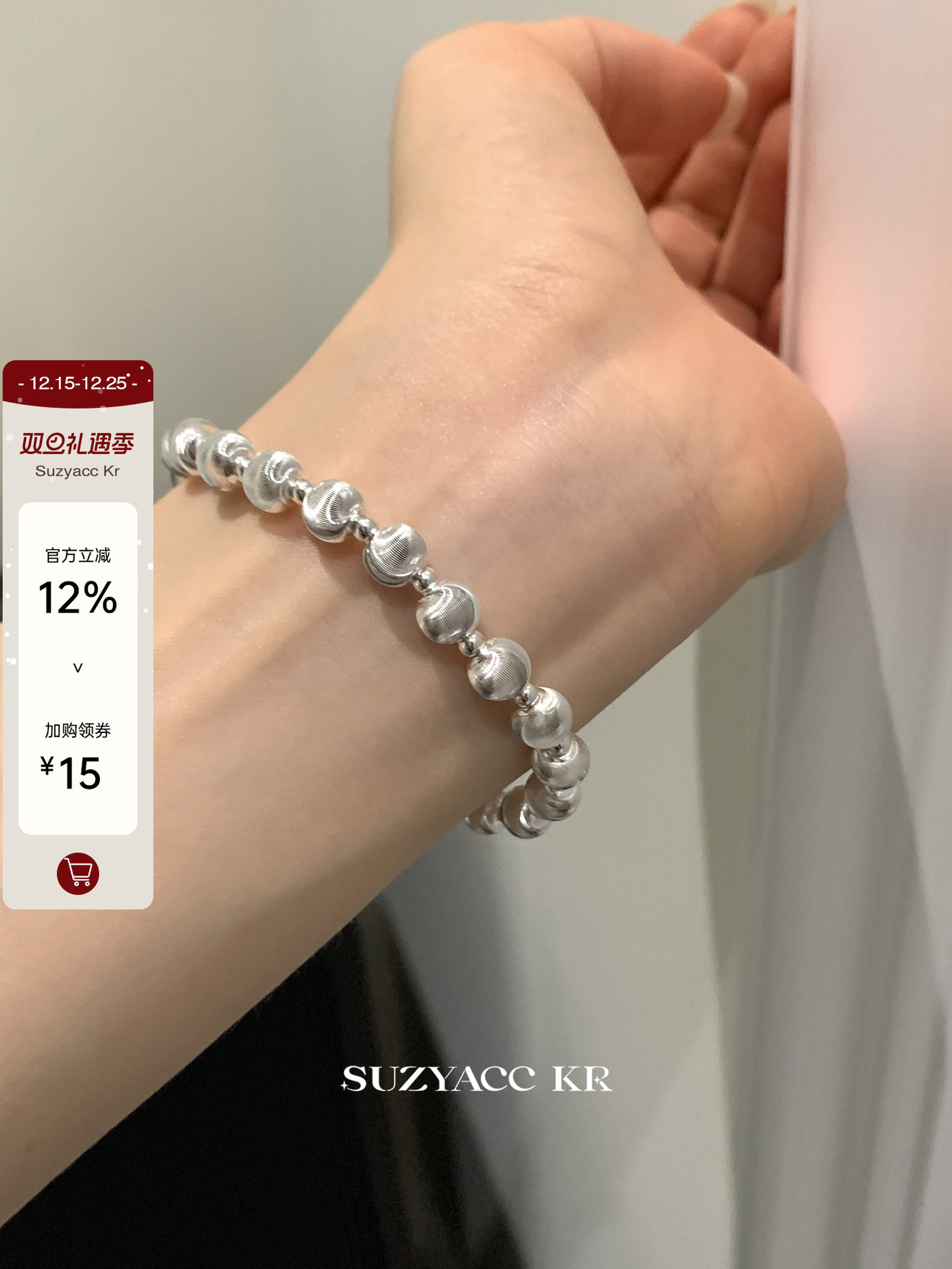 Suzyacc Kr Pure Silver Laser Cat's Eye Bead Bracelet Elastic Cord 2024 New Simple Niche Design Jewelry