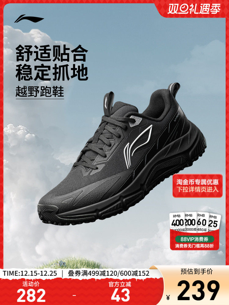 Li-Ning Zufeng丨 Trail Running Shoes Men's New Outdoor Hiking and Climbing Shoes Shock-Absorbing Wear-Resistant Black Sports Shoes