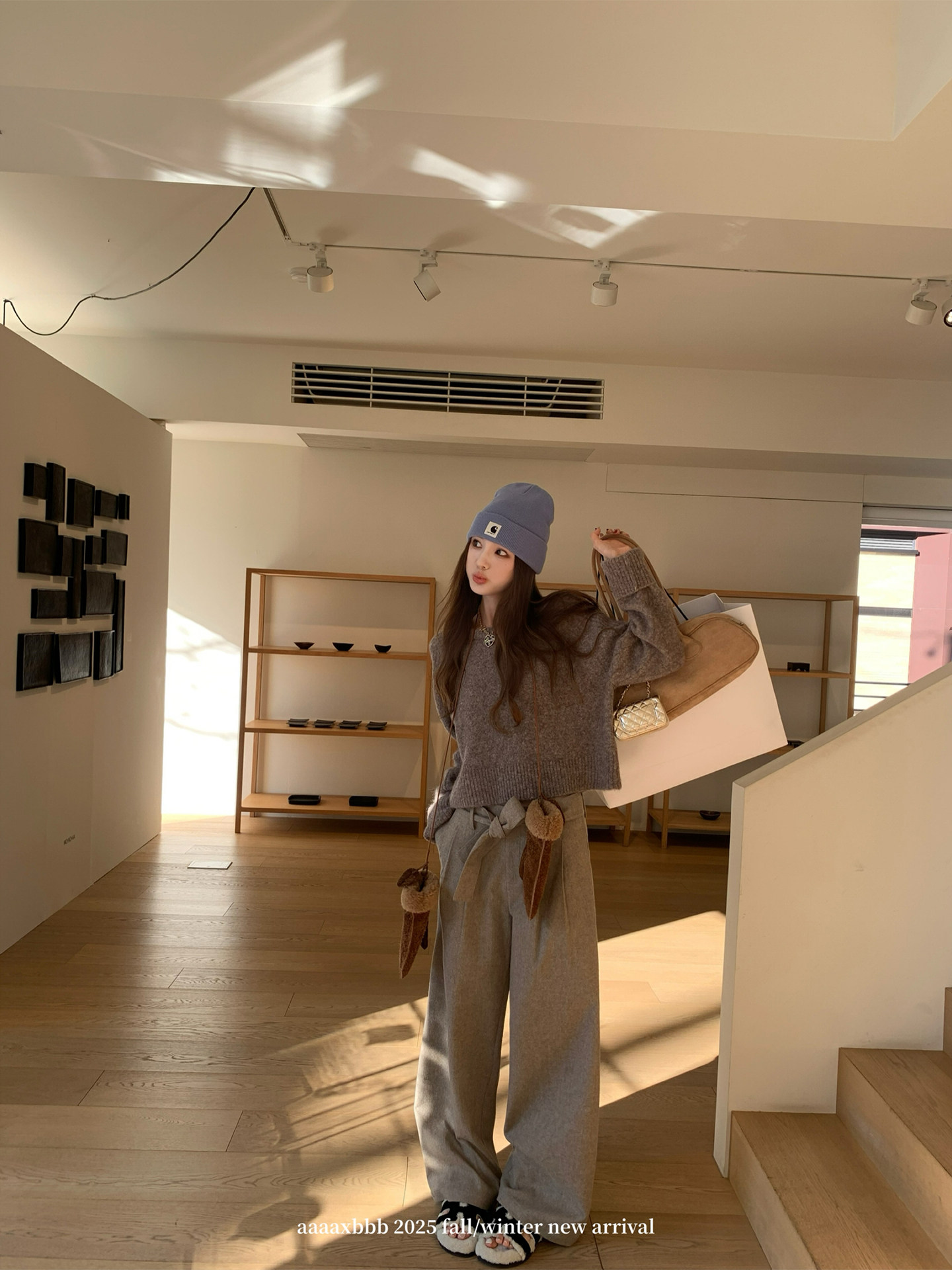 Aaaaxbbb Old-Fashioned Hazelnut Tea Design Woolen Suit Pants with Lace-Up High Waist, Slimming Floor-Length Trousers for Women