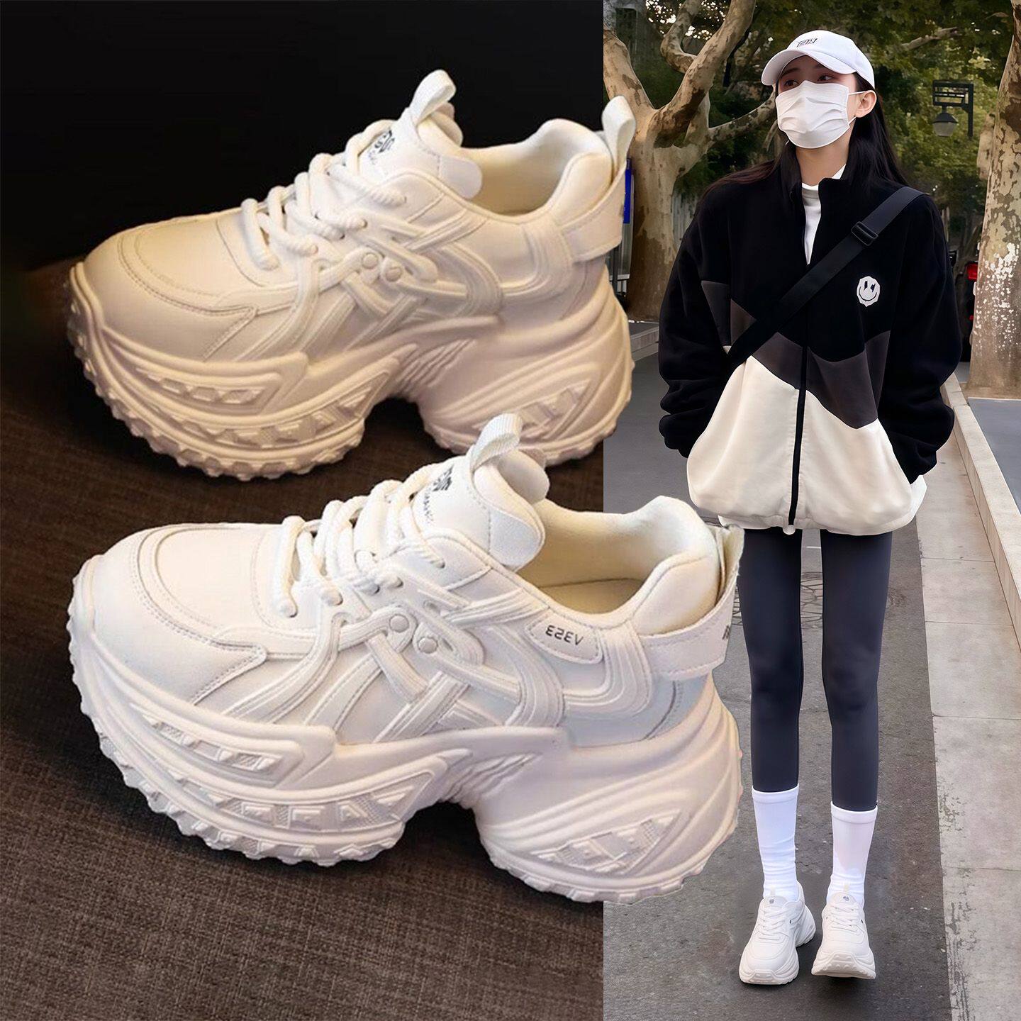 Hong Kong Style Height-Increasing Fashion Dad Sneakers for Women 2025 Spring and Autumn Versatile White Shoes Thick-Soled Casual Sports Shoes for Petite Individuals