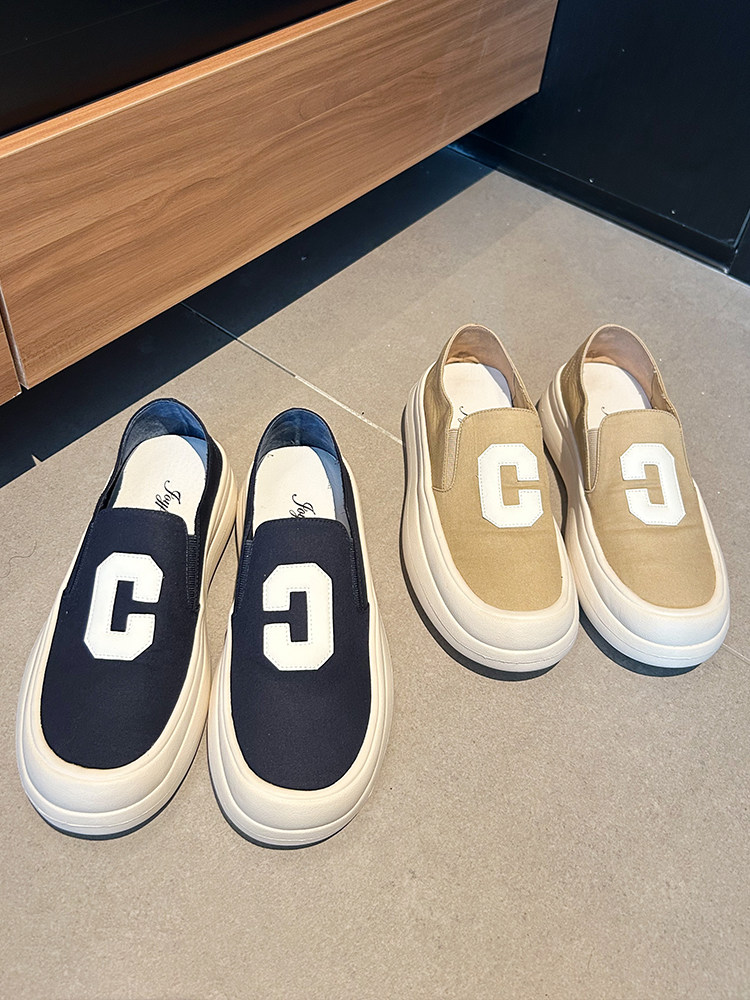 Joy Is Comfortable! C Letter Canvas Shoes, Loafers for Women, Slip-On Thick-Soled Lazy Shoes, Single Shoes, 2025 New Model